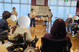 股関節回しでは、立って行う方、座って行う方と、それぞれのペースで一生懸命に体を動かしておられました。